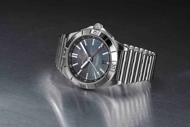 このジャパンリミテッドエディションでは、ブラックのマザーオブパールダイヤルにゴールドのブライトリング“B”ロゴをあしらい、実用性と真珠母貝の自然な美しさ、唯一性を融合させた。