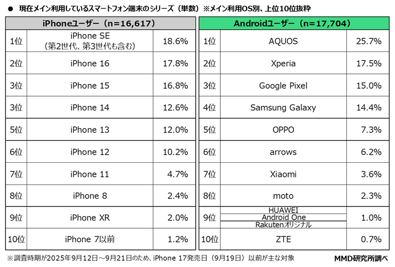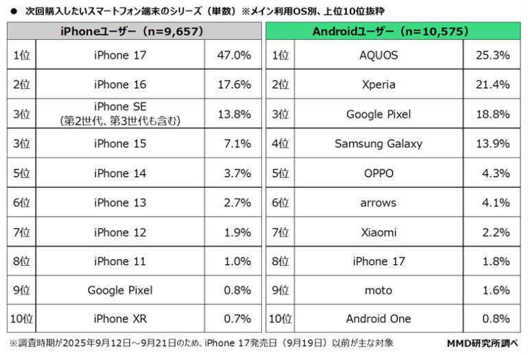 ※調査時期が2025年9月12日~2025年9月21日のため、『iPhone 17』発売日(9月19日)以前が主な対象。