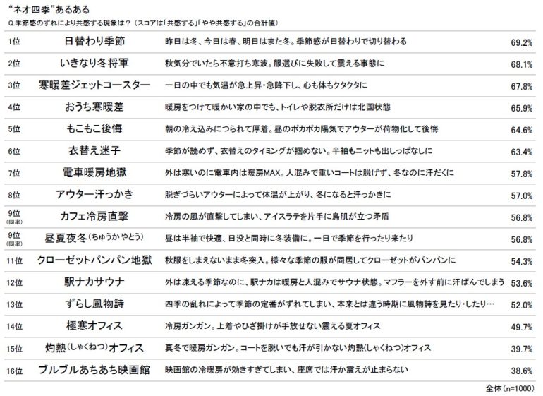 “ネオ四季”あるあるランキング!共感度トップの現象は日によって季節感が切り替わる“日替わり季節”