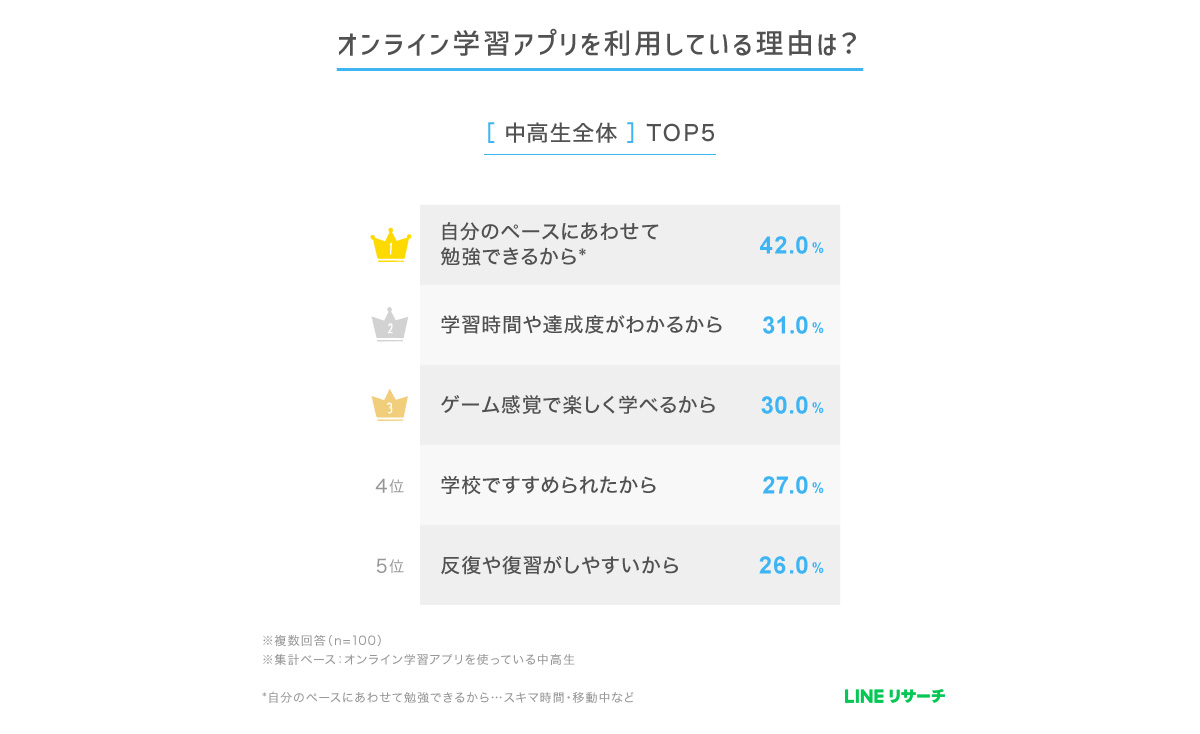 オンライン学習アプリを利用している中高生に、その理由を聞いた。