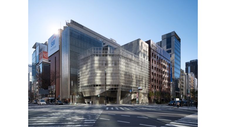 地下4階・地上5階の特徴的な建築は、あえて銀座の標準的なビルの半分ほどの高さに抑え、街に空間的な余白とリズムをもたらしている。地上は三方が通りに開かれ、地下鉄や地下駐車場とも直結。さらに、地下1階から地上2階へと広がる大きな吹き抜け構造や縦のプロムナードが、街とのシームレスな繋がりをより都会的で立体的なものにしている。