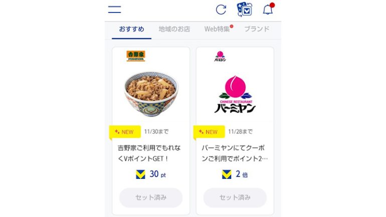 ちなみに、Vポイントアプリには、11月30日まで利用できるクーポン「吉野家ご利用でもれなくVポイントGET30ポイント」もあったため、セットしてVポイントアプリの会員コードをスキャンしてもらおう。