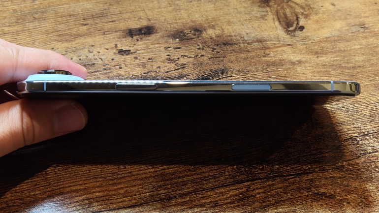 最大の特徴は、言わずもがな本体の薄さ、軽さになる。最薄部は5.64mm、質量165gと、公称値だけでもインパクトのある数字だが、実際に持ってみると、数字以上に感動してしまった。