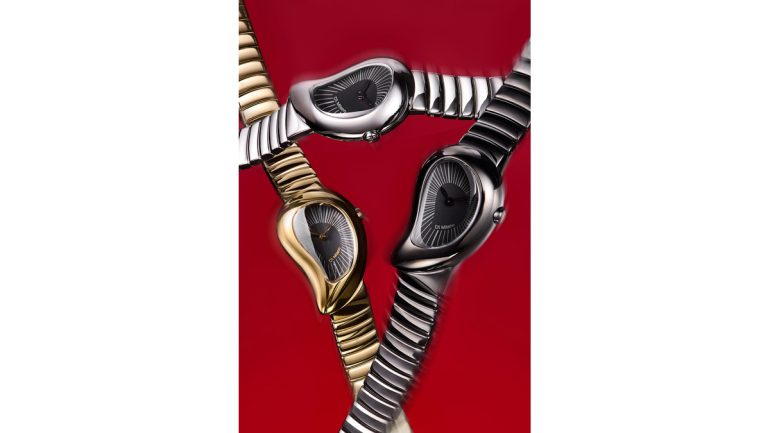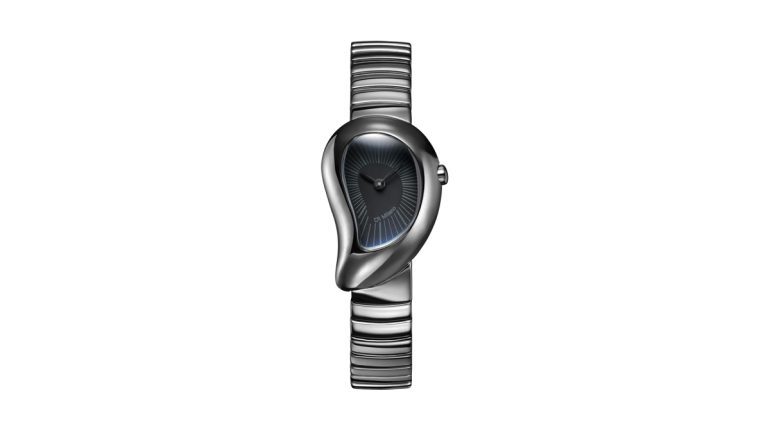 金属が溶けて流れるような質感を追求することで、時計とジュエリーの中間のような有機的シルエットを創出。「時計」と「ブレスレット」の境界を曖昧にしながら、静かに、しかし確実に印象を刻むプロダクトとして完成した。
