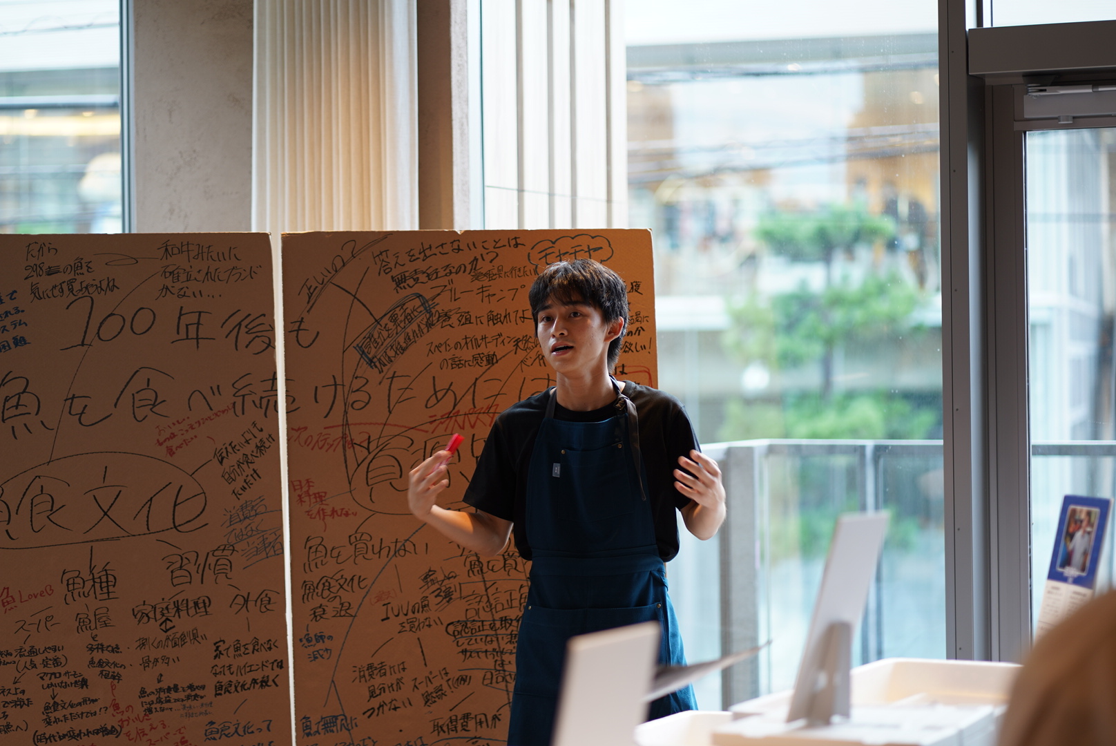 その後、学生たちはチームで「100年後も魚を食べ続けるために何を伝えるか」をテーマにポップアップレストランを企画した。 「でも、議論を重ねるほど“正解”が見えなくなった」と田中さんは振り返る。