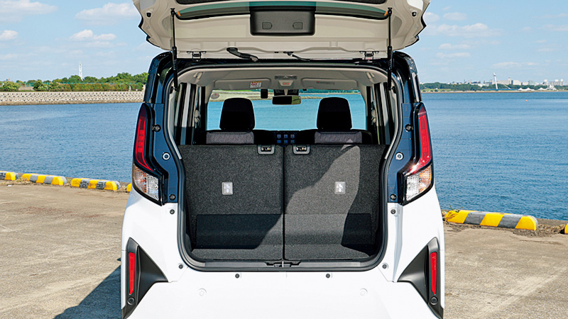 リアシートは分割式で前後240mmに及ぶロングスライドを実現。荷室デッキボードを外せば観葉植物など高さのある荷物の積載も可能。