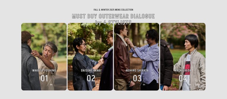 ブルックス ブラザーズから、上質なアウターウェアコレクションが登場。数ある新作アウターの中から厳選したイチオシアウターを、メンズファッション業界で活躍するスタイリスト吉野さん、荒木さん、四方さん、池田さんの4名がそれぞれの感性でコーディネートしてもらった。