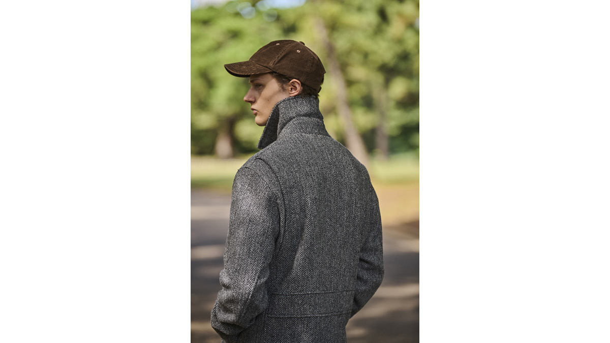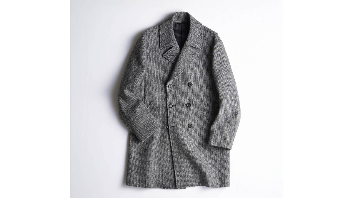 ブラック/ホワイトの糸を複雑に織り上げることで表現されたグレーのヘリンボーン柄は奥深い色合いを宿し、時を重ねるごとに味わい深い経年変化を愉しめる。卓越した耐久性と防寒性を備え、永年の着用に耐えうる一着だ。