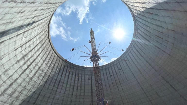 まさか元・原発施設の中にこんなアトラクションがあるなんて。高いところあまり得意じゃないんですが、ここまで来たからには体験せねば。