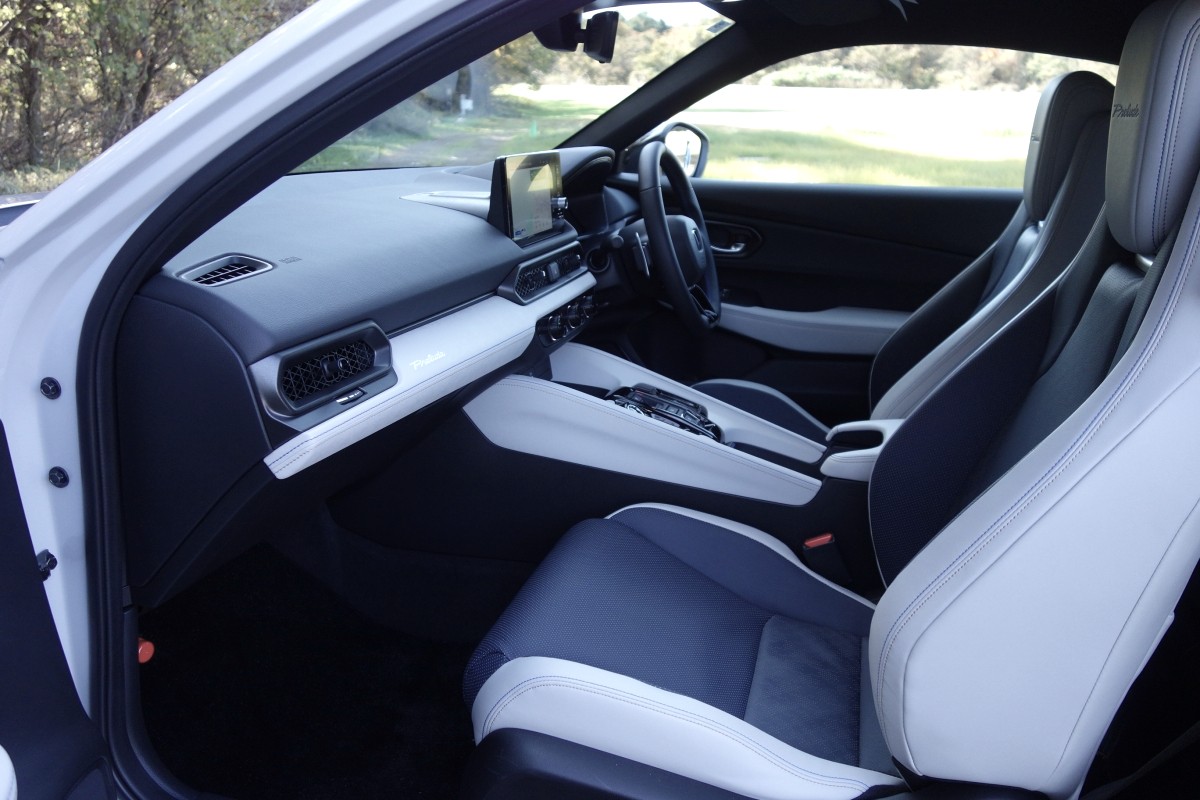 FFの駆動方式でパワーユニットこそシビックe:HEVモデルなどでおなじみのSPORTS e:HEV 2.0L直噴エンジン、141ps、18.6kg-mとモーター184ps、32.1kg-mの組み合わせではあるものの、シビックtype-Rと共通かつプレリュード用に専用セッティングされた前後サスペンション、専用パワーステアリング、ZF製電子制御連続可変ダンパー、ブレンボ製ブレーキキャリパー、プレリュード専用235/40R19タイヤ(コンチネンタル・プレミアムコンタクト6)、そしてブレーキング時まで作動するアジャイルハンドリングシステム(回頭性や安定性を高めるシステム)などまでが贅沢にも奢られている。