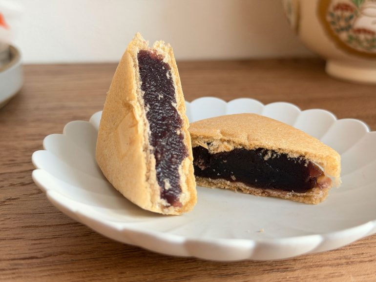 中身は粒の存在感が強めのつぶあんで、これがまたいい。厚みのある生地としっとりかつ粒感のあるあんこ。幸福感のあるビジュアルだ。