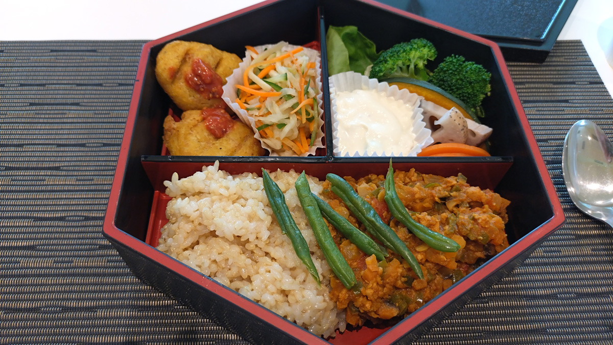 社内には、社員の声から生まれた「歯磨き専用ブース」を設置。社員食堂では『心身健康道場』のレシピを再現した玄米菜食メニューを提供し、「健康な食事・食環境」認証制度の『スマートミール』認証も取得している。