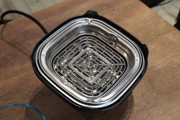 パワーポッドには1400Wの強力ヒーターとファンが内蔵されており、運転時にはガラスコンテナ内に向けてパワフルな熱風を循環させる仕組みになっている。構造としては、本体とコンテナが完全に分離したタイプのエアフライヤーと同じものだ。