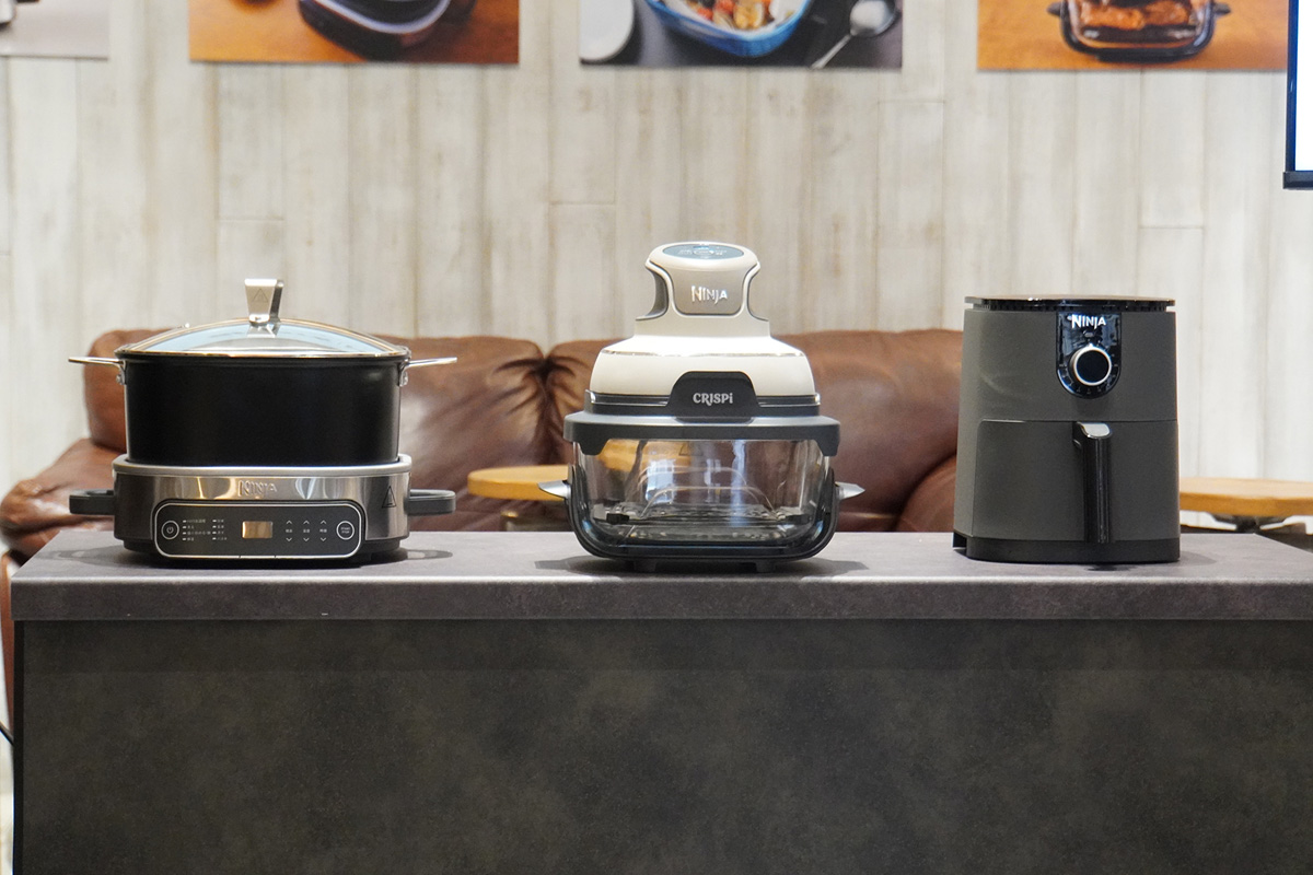 ニンジャは今回、Crispiのほかに炒め物から蒸し物、煮込み、炊飯といった8種類の調理が1台でできる「Ninja エブリデーポッシブルクッカー」、幅約20cmの小型設計の「Ninja ミニエアフライヤー」も発表。いずれも「火を使わず、手間を増やさず、きちんとおいしい料理を実現する」ための製品だ。