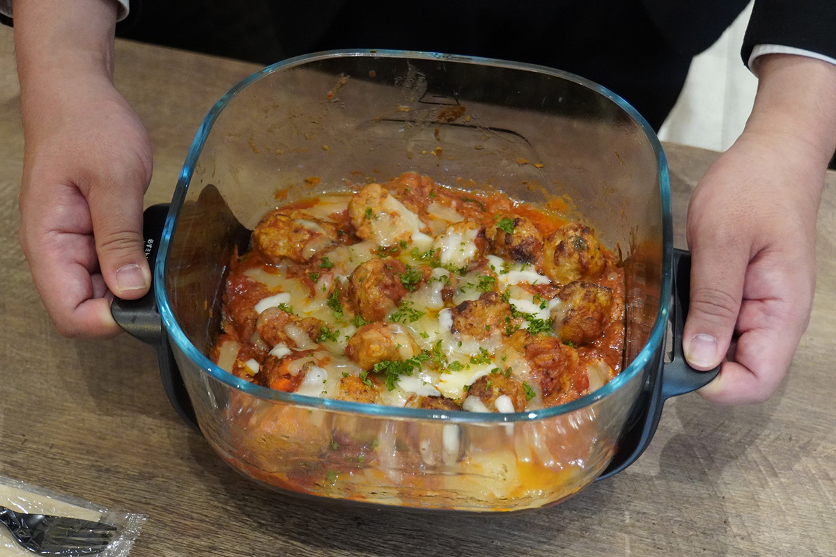 下味をつけたら、そのままパワーポッドを載せて加熱に移れるため、調理ボウルと加熱容器を兼ねることが可能。調理時の洗い物を減らせるうえ、調理後はガラスコンテナでそのまま食卓にサーブもできる。
