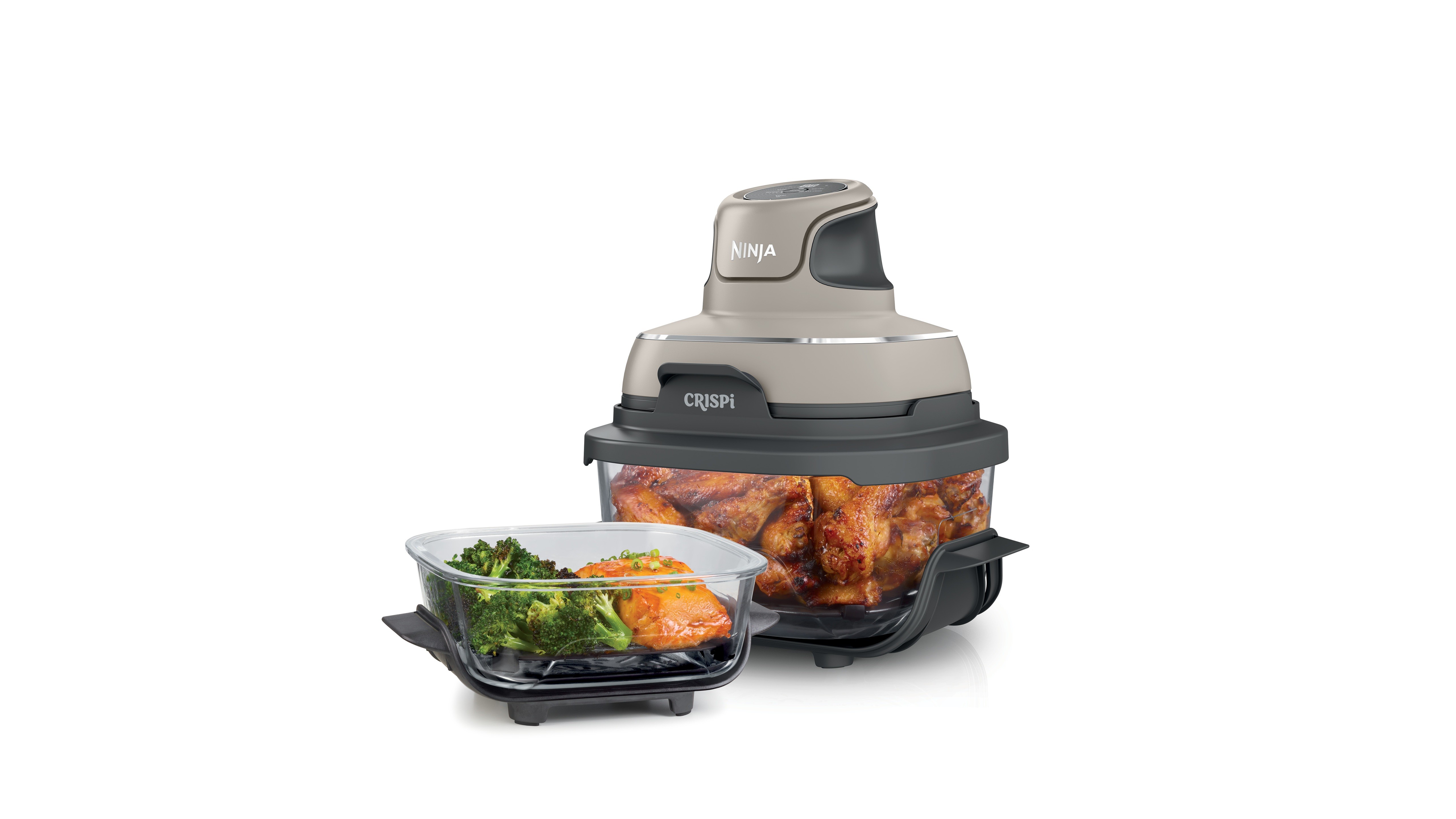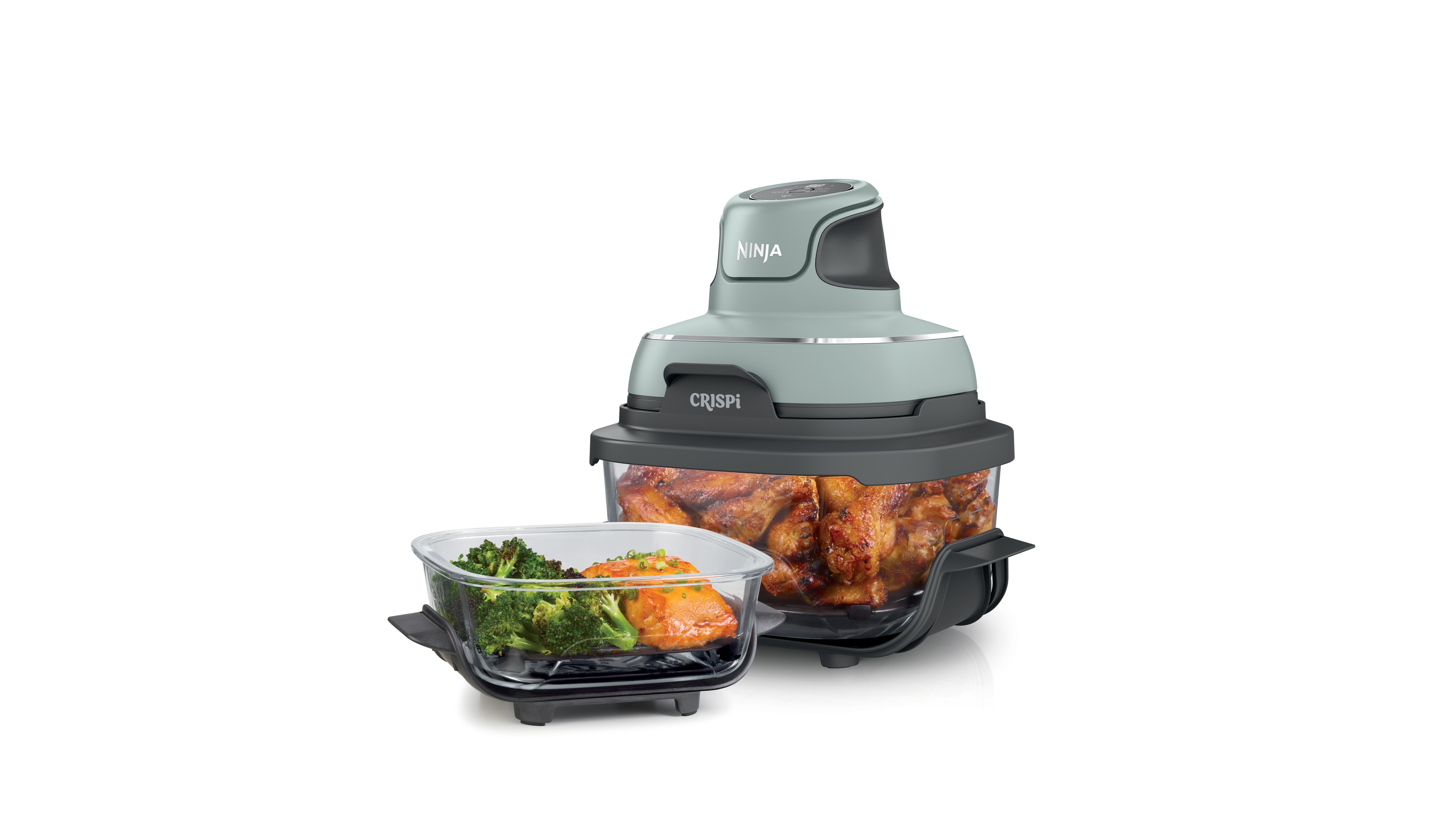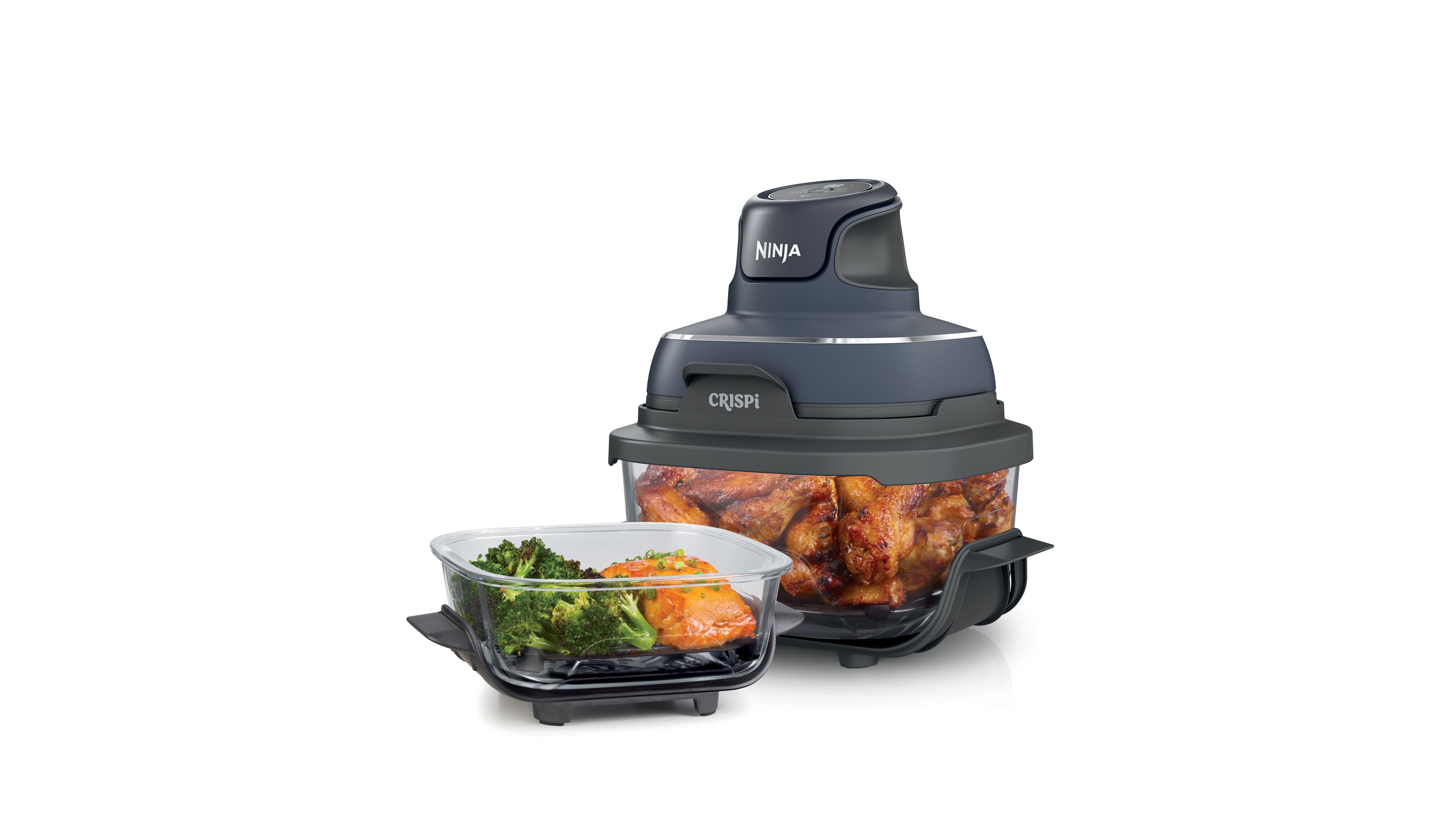発売する3製品は、これまでの料理時間をより「簡単、おいしい、楽しく」に変え、新しい体験を提供する加熱調理家電。「Ninja Crispi テーブルクッカー」は、ガラスコンテナに食材を入れて「下ごしらえ、加熱調理、サーブ、保存、温め直し」までが1台で完結できる、新感覚のテーブルクッカー。強力熱風ファン、高火力ヒーター、高熱伝導プレートの組み合わせにより、ジューシーで本格的な仕上がりを実現する。