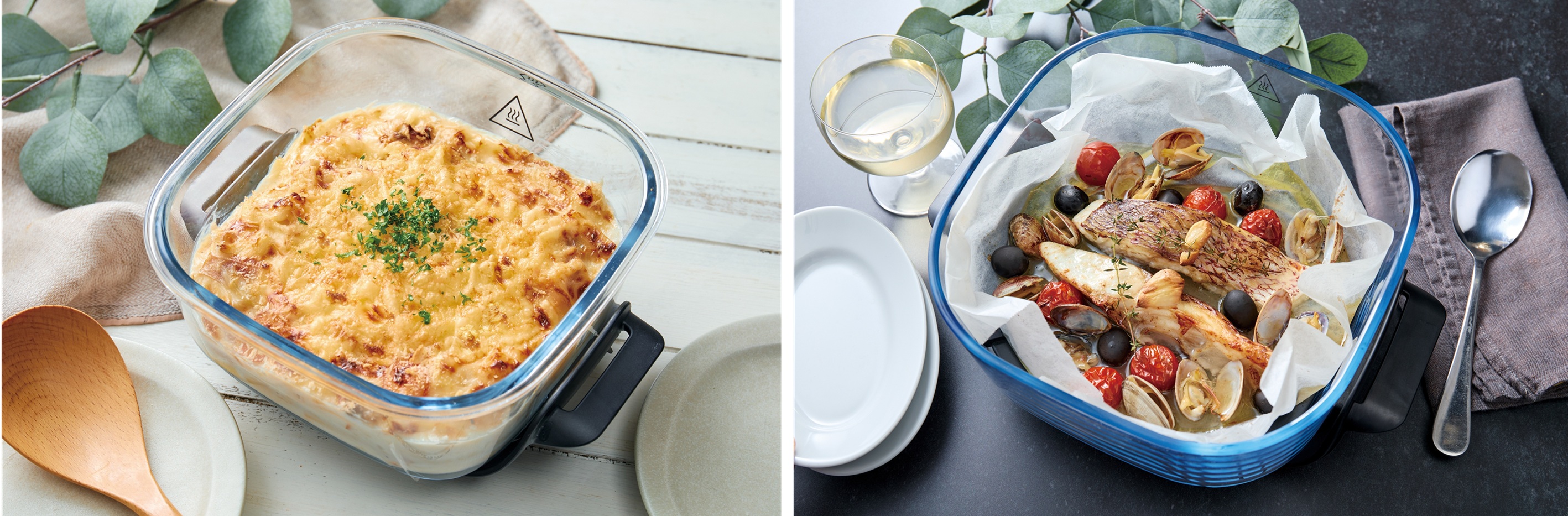 さらに、ガラスコンテナひとつで「下ごしらえ」から「加熱調理」、「サーブ」、「冷蔵・冷凍保存」、「温め直し」まで行なえるため、調理の段取りがスムーズになり、洗い物も減って、より気軽に料理を楽しめる。