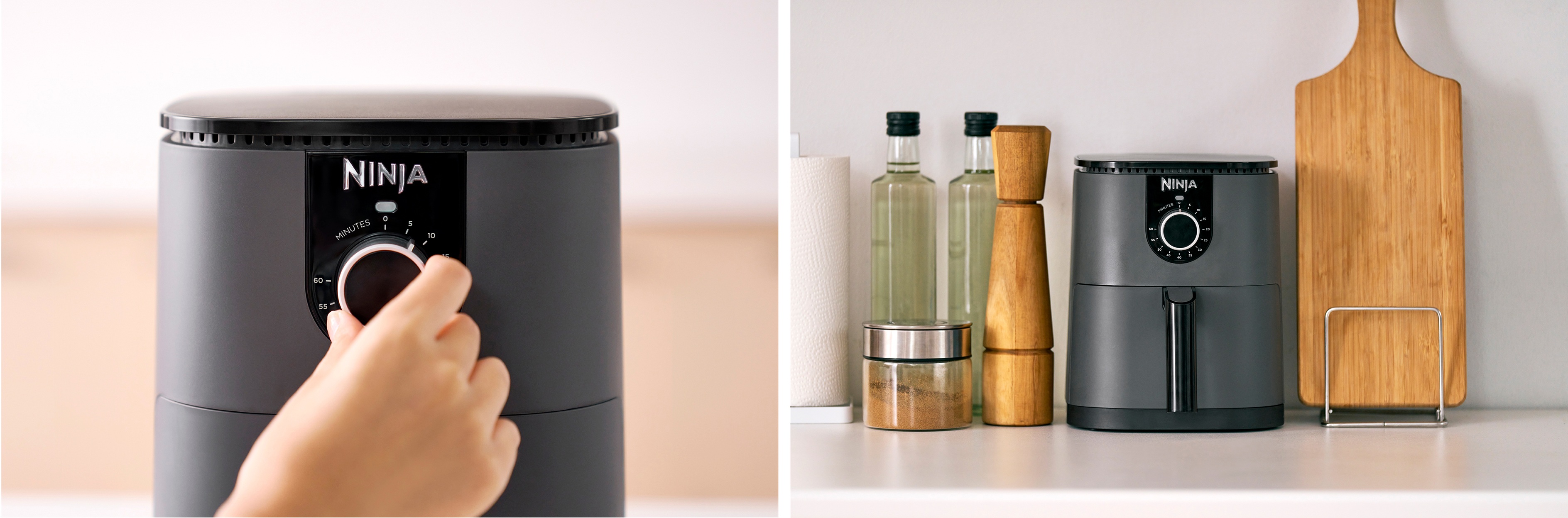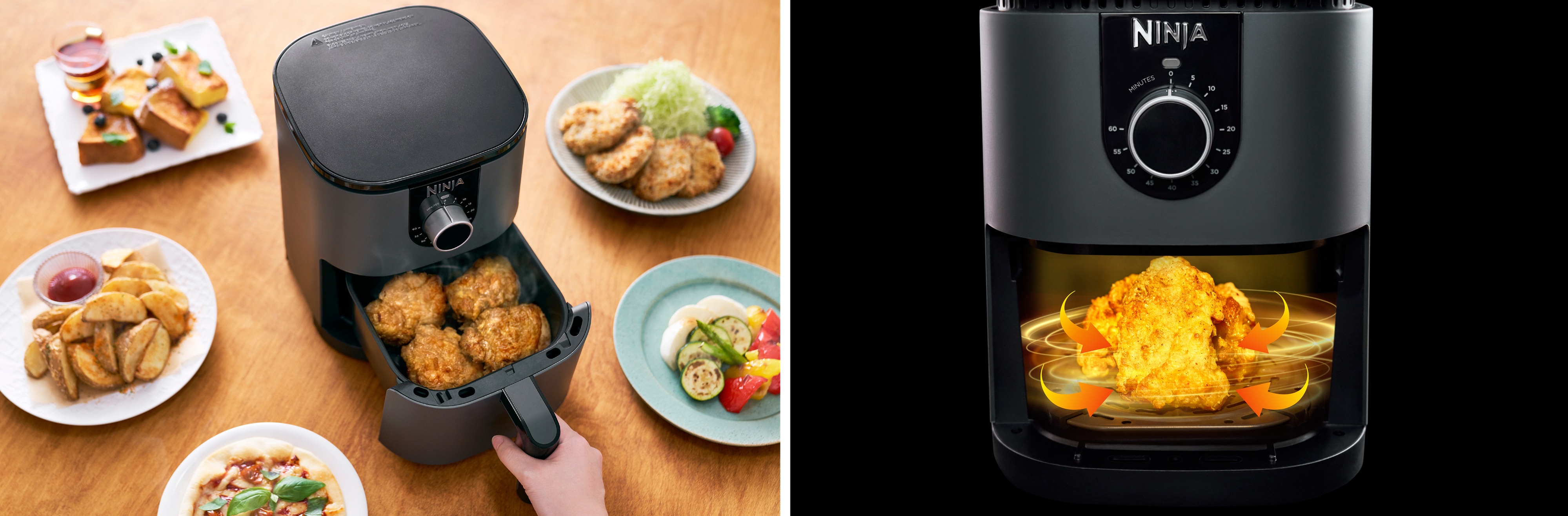 そして、「Ninja ミニエアフライヤー」は、ダイヤルを回すだけの簡単な操作で、強力熱風が食材を包み込み、外はカリッと、中はジューシーな仕上がりを実現する。