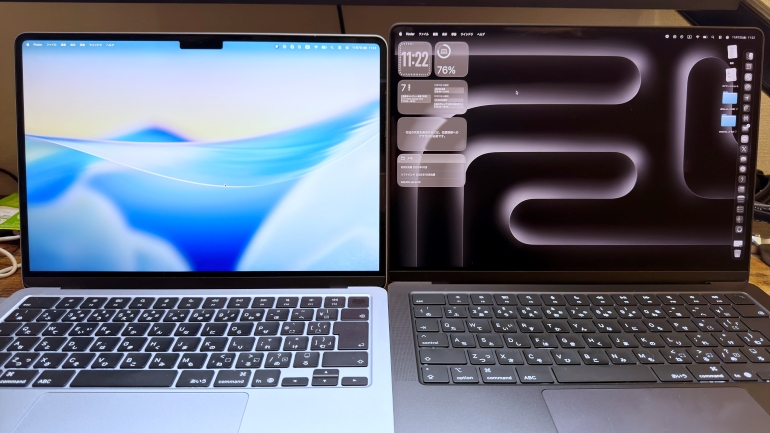 MacBook Air(M4)と使い比べていても、極端にパワーの違いを感じるシーンはほぼないが、これは主に筆者の使い方が原因だろう。原稿の執筆や添付写真の編集が中心となっており、同時に動画や音楽の再生、AIチャットとの簡単なやり取りを行うことがあるが、動画編集やゲームといったヘビーな作業を行わない場合は、体感できるほどの違いはほぼない。「確かにちょっと動きが早いかな?」くらいの違いである。