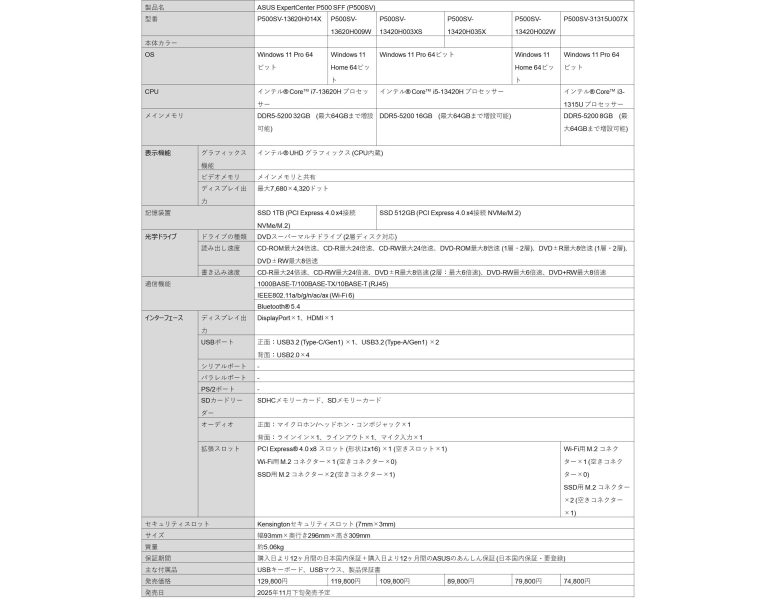 ビジネス向け小型デスクトップPC「ASUS ExpertCenter P500 SFF」の追加モデルも登場!