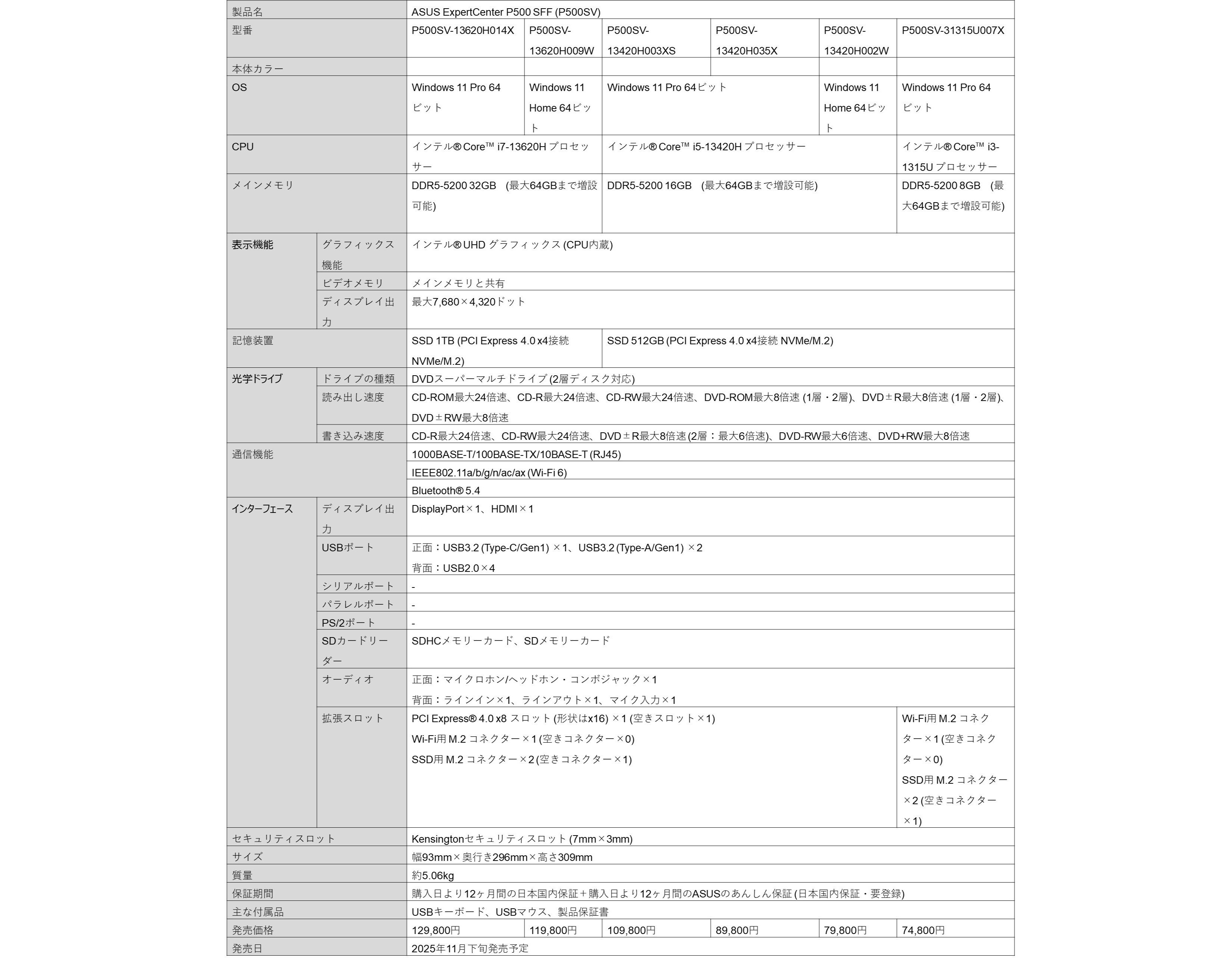ビジネス向け小型デスクトップPC「ASUS ExpertCenter P500 SFF」の追加モデルも登場!