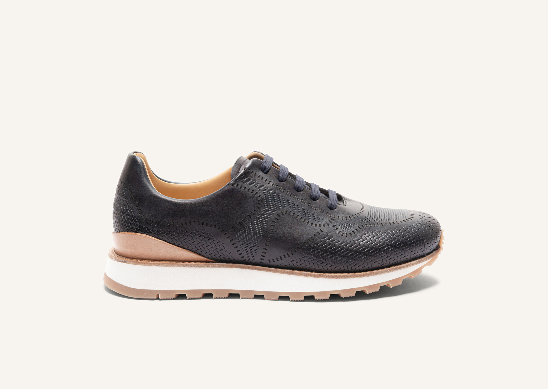 アッパーにレーザーカットを施した「モエナ スニーカー」。カジュアル・ラグジュアリーの領域へとその可能性を広げている。これはテストーニが絶え間なく挑戦を続けていることの証だ。