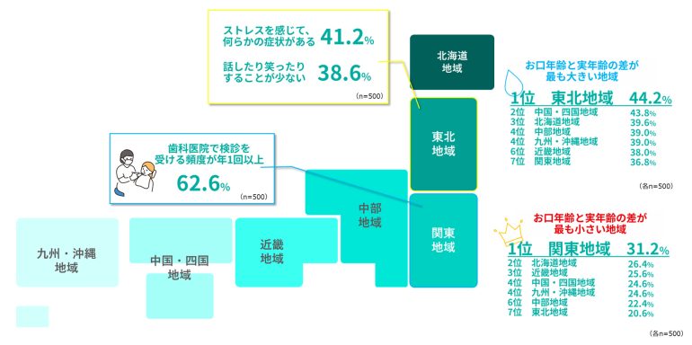 お口年齢の差が最も大きかったのは「東北地域」と判明!
