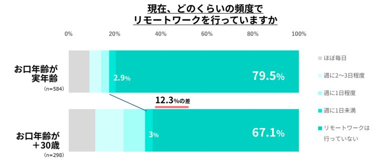 実年齢に近い結果となった82.4%が「リモートワーク週1回未満」と回答!おうち時間の長さが“お口年齢”に関係?