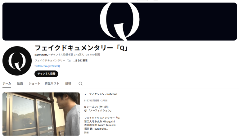 『フェイク・ドキュメンタリー「Q」』は、YouTubeチャンネルで配信されている人気ホラーシリーズ。地上波で放送されなかったファウンド・フッテージもの(「偶然発見された未編集の映像」という設定のモキュメンタリー)として多くの視聴者を獲得している。