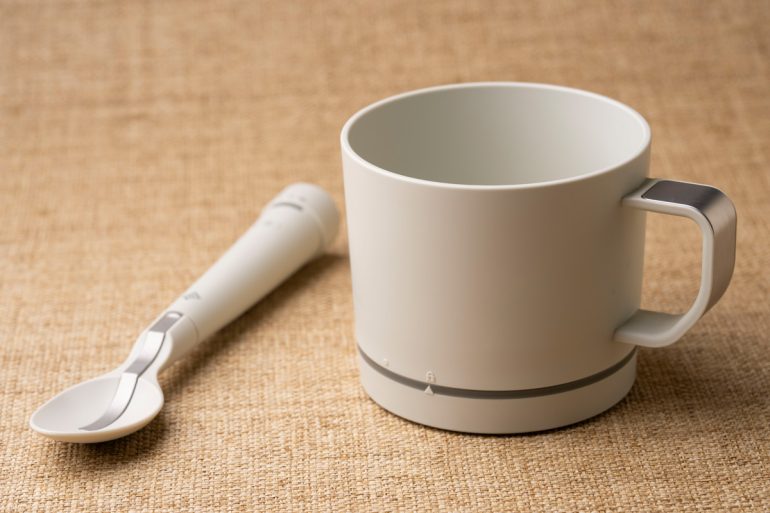 ラーメン、味噌汁、丼物、パスタ……美味しいメニューに塩味は欠かせない。せっかくの「食」の楽しみが奪われるのは辛いが、減塩はした方がいいんだろうな――。という人に向けて「健康的な食事をよりおいしく」食べてほしいと開発されたのが、電気の力で減塩食品の塩味やうま味を増強する(※)減塩サポート食器「エレキソルト」。「カップ」と「スプーン」の2種類が展開されている。(本品は医療機器ではありません。)