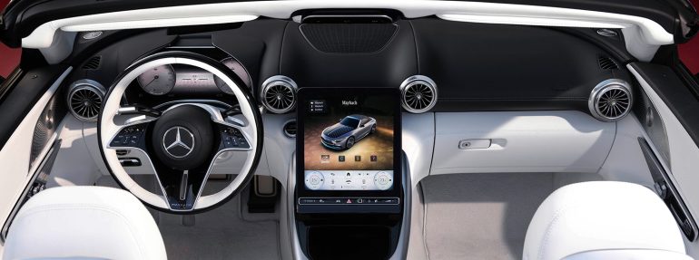 熟練したクラフトマンシップ、上質な素材、精緻なデザインディテールなど、マイバッハを特徴づけるすべての要素が、ダイナミックなドライビングエクスペリエンスと融合している。マイバッハSLは、ブランド哲学に則り、乗員を洗練された空間で包み込み、五感を満たす体験を提供する。