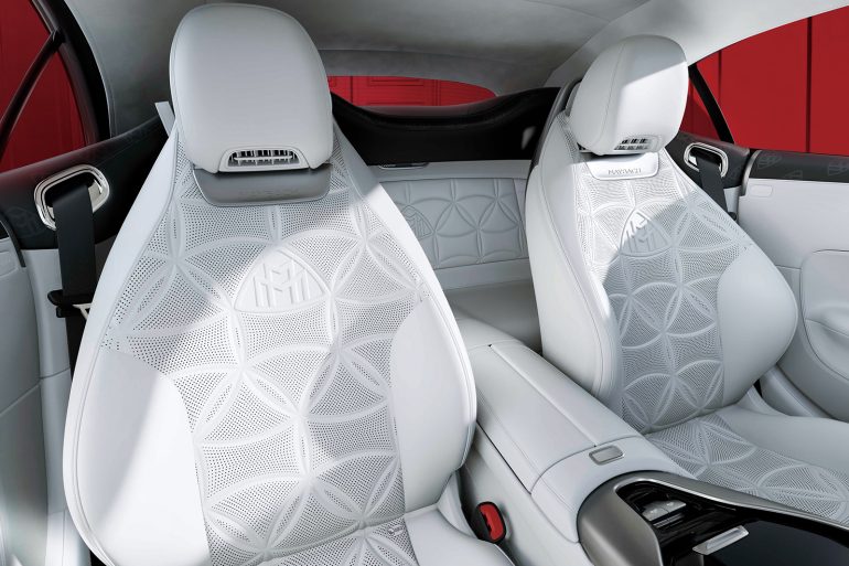 そしてシートに施された花びらを思わせるフローラルデザインの刺繍加工は、フロントシートだけでなくリアコンパートメントにも引き継がれ、エンボス加工のマイバッハエンブレムが格調高いアクセントを加えている。さらにレザーの縫製にまでクラフトマンシップが宿る上質なシート素材が、マイバッハならではの最上級の乗り心地を提供。
