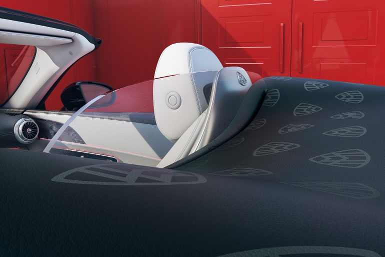 一方「ホワイトアンビエンス」は、外装色に「MANUFAKTURオパリスホワイトマグノ(マット)」を採用し、内装色の「MANUFAKTURクリスタルホワイト(ナッパレザー)」との統一感を演出している。いずれもブラックトーンで仕立てられたボンネット/ソフトトップと外装色のコントラストによって、マイバッハならではの贅沢なツートーンデザインを生み出している。
