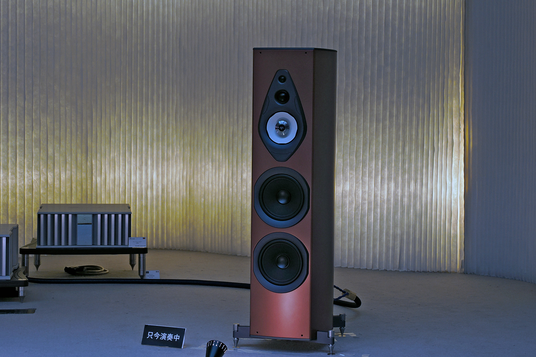 ハイエンドスピーカーの潮流は、ユニット以外から余分な音を出さずに音場再生を追求することだ。これに真っ向から対抗して楽器的スピーカーを作り続けているのがイタリアの名門ソナス・ファベールだ。新フラッグシップ「Amati Suprema」は、まさに工芸品の域に達している。木と革、そして金属が織りなす造形美は、単なるスピーカーを超えて“楽器”そのもののようである。新開発の4.5ウェイ構成により、深く沈み込む低域と立体的な音場を両立。音楽の情感を極限まで引き出す再生能力に、長年のファンも息を呑んだ。