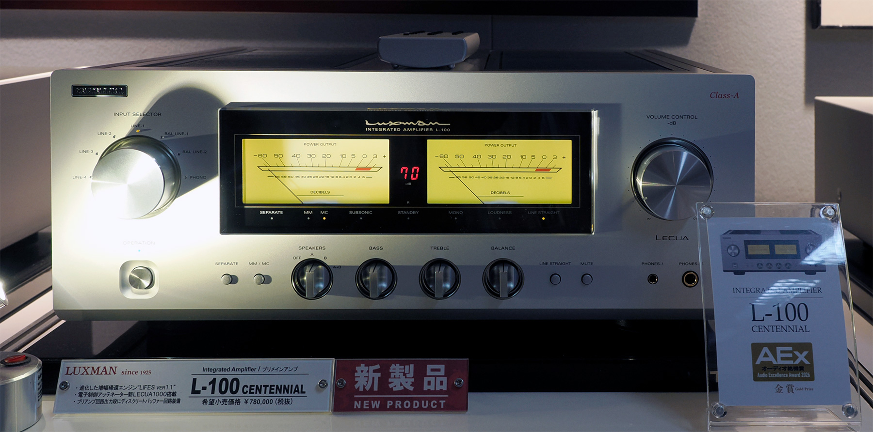 創業100周年記念のラックスマンは、新世代の純A級プリメインアンプ「L-100 CENTENNIAL」を展示。伝統の回路技術を継承しながら、最新の音質チューニングで“しなやかな力強さ”を実現。滑らかで厚みのあるサウンドは、まさにラックスマンの美学そのものである。