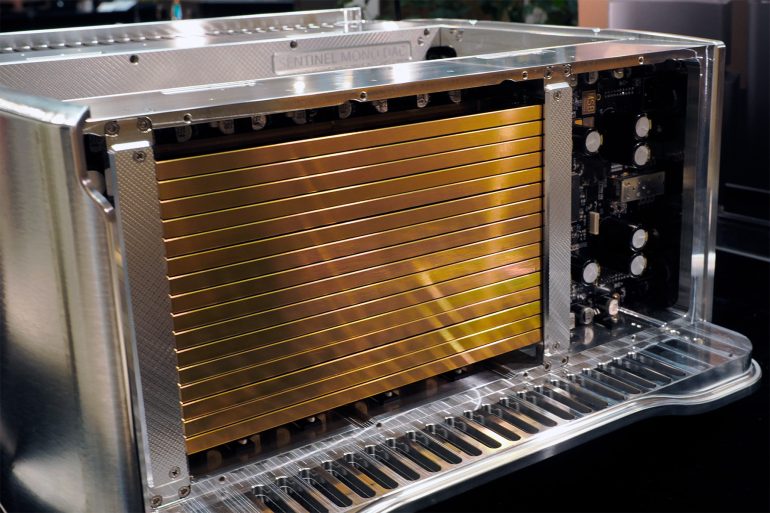 サイドのヒートシンクを外すと、隙間なく重ねられたチャンネル当たり16基の32 Hybrid DAC MkIIモジュールが姿を現した