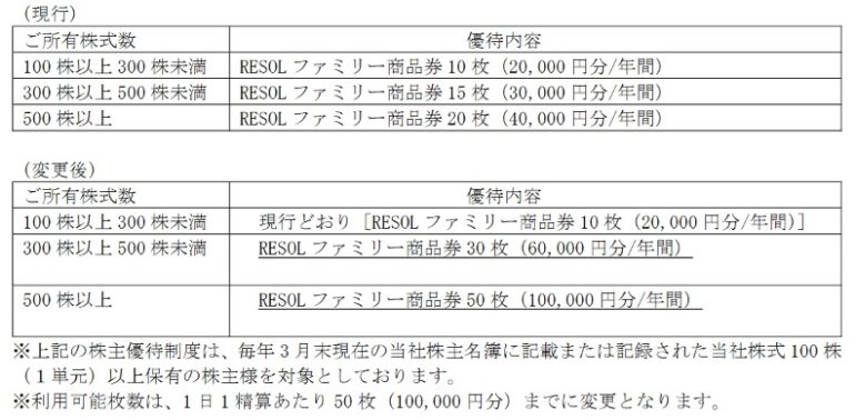 ホテル運営をするリソルホールディングスは、11月6日に株主優待制度の拡充を発表。これにより、300株、500株を保有する人が受け取る株主優待は倍以上になる。