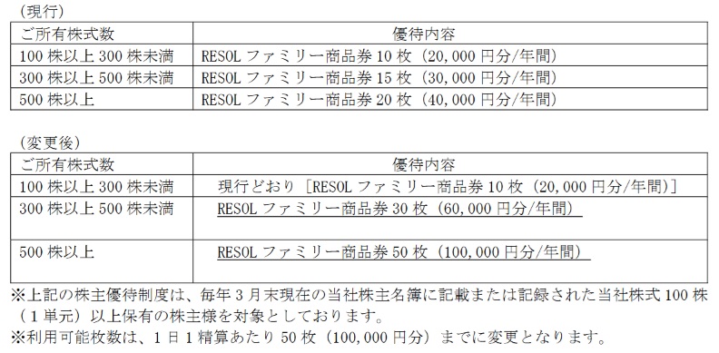 変更後RESOLファミリー商品券50枚(10万円分/年間)