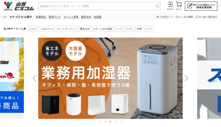 「山善ビズコム」で何が買えるのかというと、加湿器やポリプロピレンチェスト、防災用品から電動工具、芝刈り機まで。掃除用品やキッチン用品もあるため、買いかえを迷っていた商品を探してみよう。