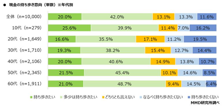 現金を持ち歩きたくないと思うのは20代が最も高く30.8%
