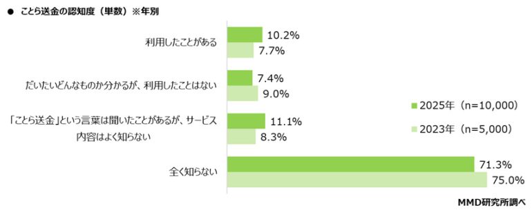 ことら送金の認知度は28.7%、利用経験は10.2%