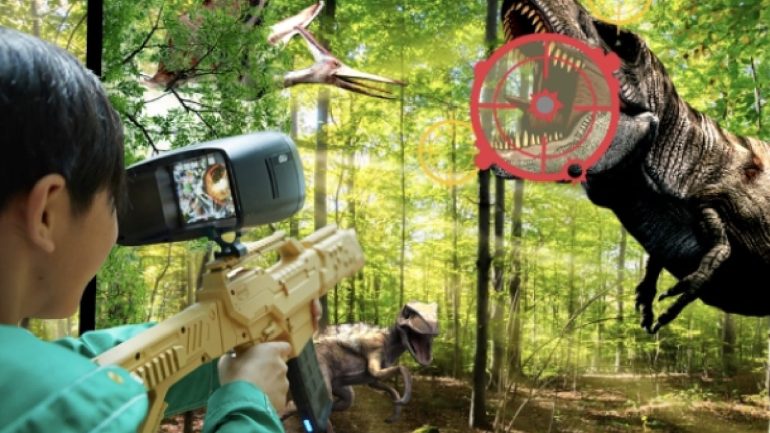 また、次世代型アクティビティとして登場するのが「ジュラシックハンター」。園内を探索しながら、ARシューティングガンに現れる恐竜をスマートフォン上で撃退する、自然とバーチャルが融合したゲームだ。