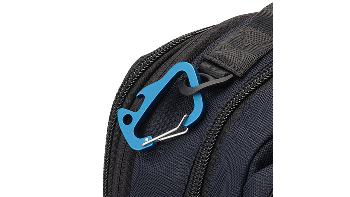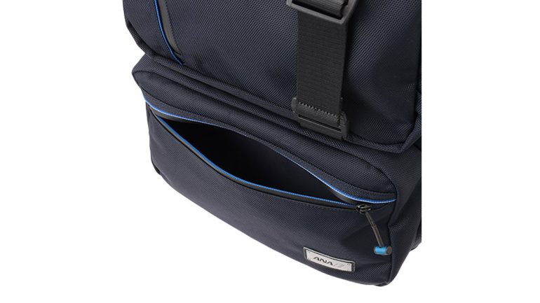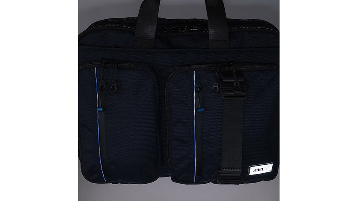 機能性だけでなく、持つことの満足感を高めるデザイン性も追求。上品なダークネイビーを基調に、随所にANAらしさをちりばめた。内装やファスナー引手など、アクセントにはANAを象徴するブルーを採用。
