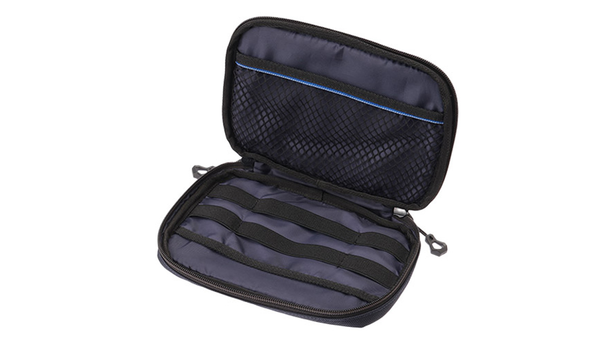 PC、スマートフォン、充電器、ケーブル類など、散らばりがちなデジタル機器や小物をまとめて整理・持ち運べる専用ケースが付属。