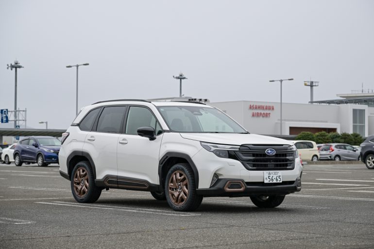 この@DIMEでは袖ケ浦フォレストレースウェイでのプロトタイプ試乗記、浜名湖を往復した“わんこと行くクルマ旅”でも新型フォレスターの概要、試乗記をお届けしているが、今回は飛行機で北海道・旭川に飛び、旭川空港からスバル研究実験センター美深試験場までの約125キロの行程を、新型フォレスターのストロングハイブリッドモデルとガソリンターボの2台を乗り換えつつ、走破するというプログラムに参加した。