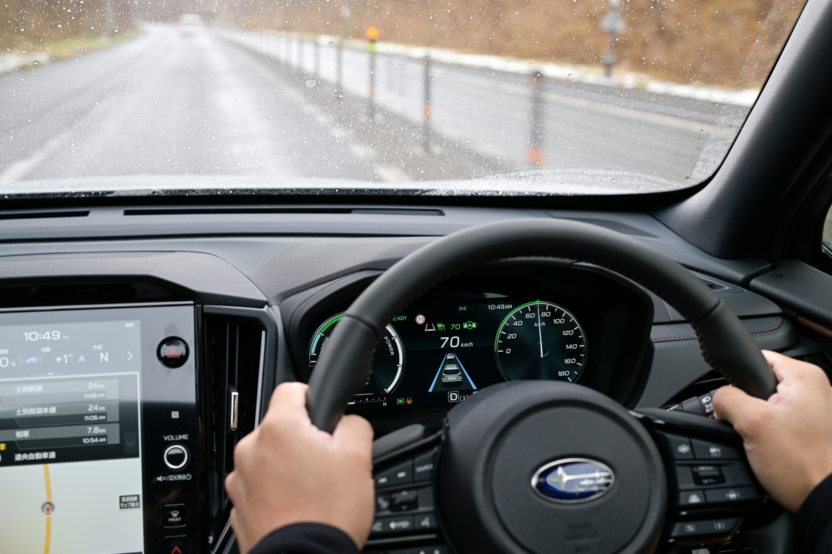 そうした安心感はスバルのシンメトリカルAWDの高度な制御はもちろん、全方向の視界の良さによって得られたことも実感できた。