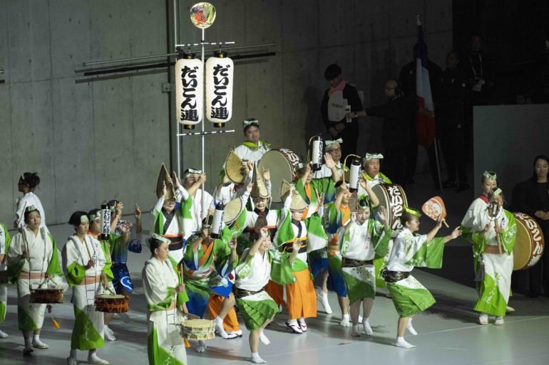 世界からの選手団のお迎えは「阿波踊り」のリズムとパフォーマンス