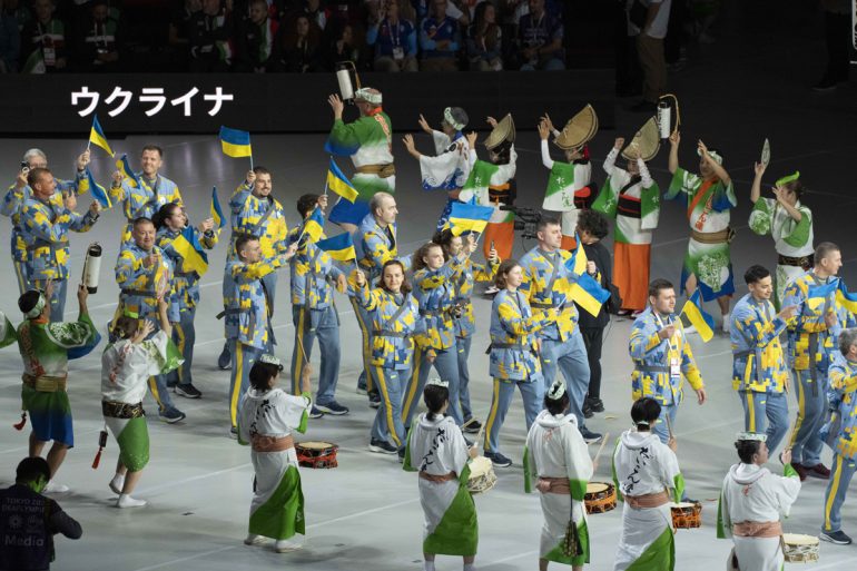 そして選手入場。戦禍にあるウクライナも参加の列に。全身グリーンのリトアニア、イギリスのジーンズなど、各国の選手団の個性あふれるユニフォームも目を引いた。