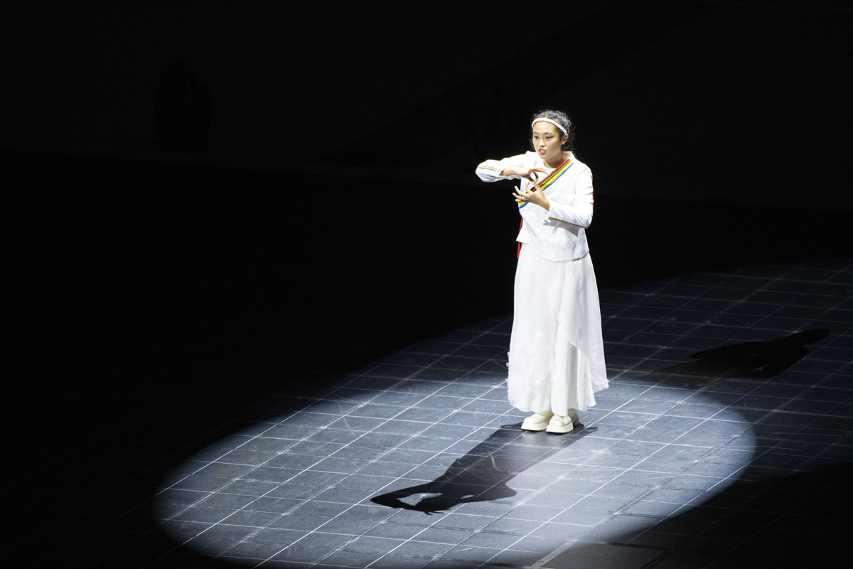 開会式の最後は、アーティスティックプログラム『100年の1日』の披露で締めくくられた。この作品は、きこえない・きこえにくい人ときこえる人、そして大人や子どものさまざまな背景を持つ人々の「共生社会~未来へ」がテーマ。そしてステージ上だけではなく客席にもパフォーマーを配置。選手団や来場者までを巻き込んで、会場全体で一体感のある演出が施されていた。
