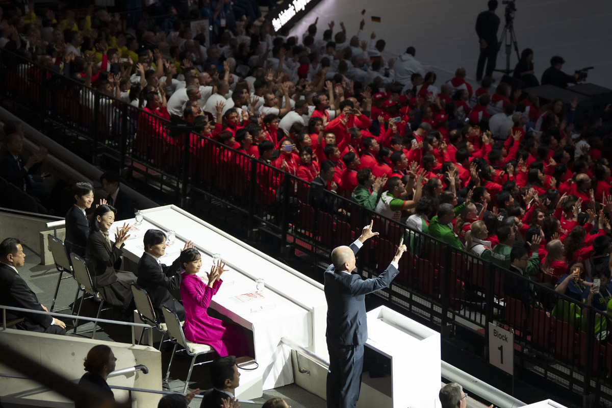 選手団の入場が終わると、一般財団法人全日本ろうあ連盟理事長石橋大吾氏、東京都知事小池百合子氏、内閣総理大臣高市早苗氏が挨拶。秋篠宮皇嗣殿下ご一家も各国の選手団を見守り、手話言語で拍手を送られた。
